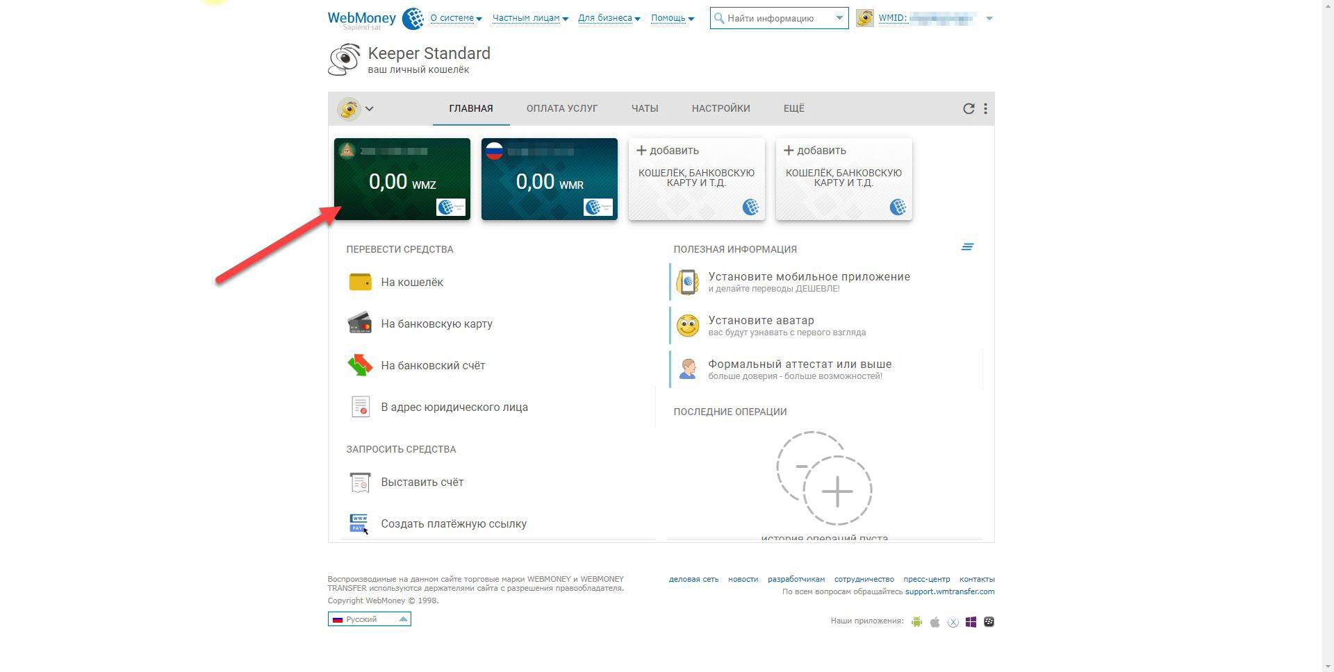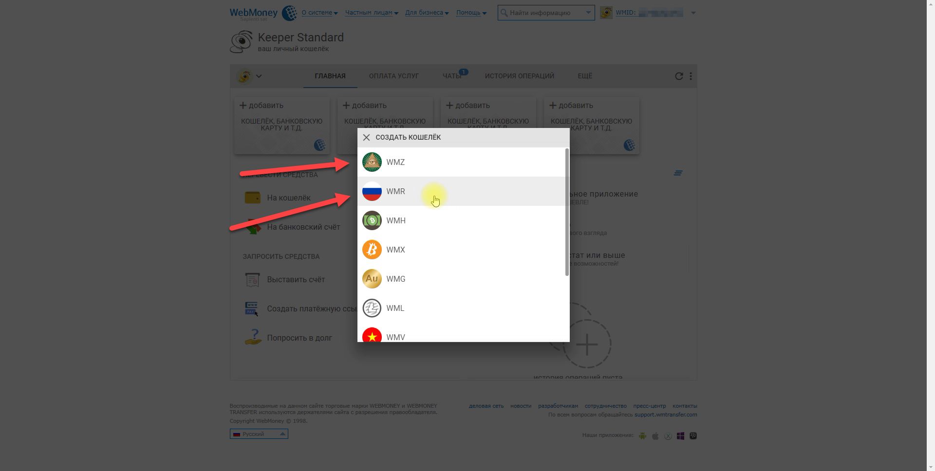 5. Выбираем тип кошелька: WMZ - долларовый, WMR - рублёвый и так далее. Для оплаты на Thelotter нам потребуется WMZ кошелёк.