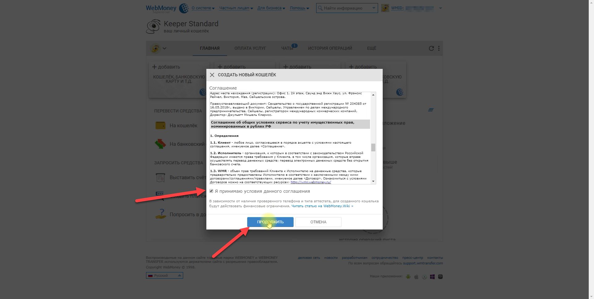 6. Принимаем условия соглашения и нажимаем "Продолжить".