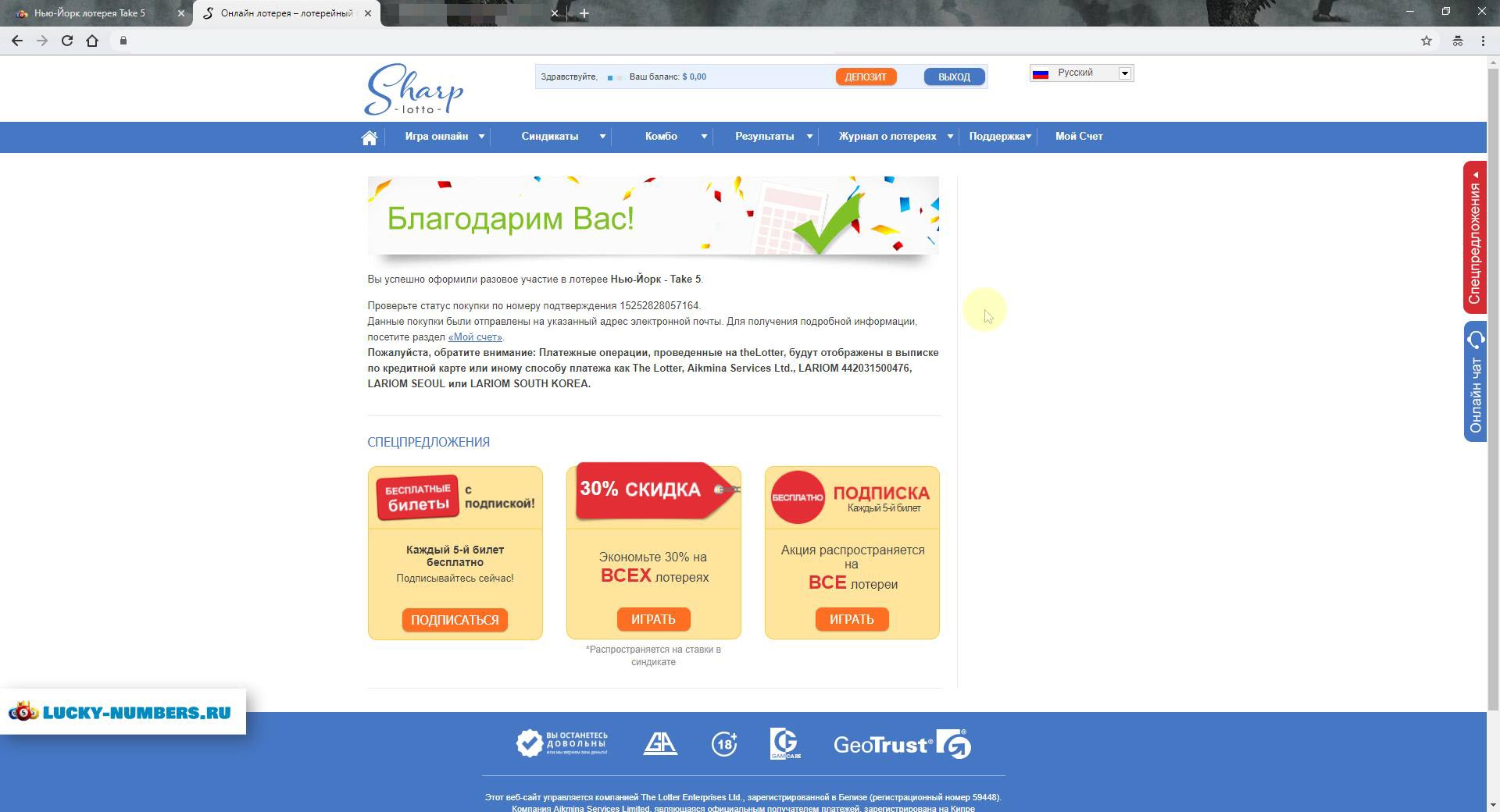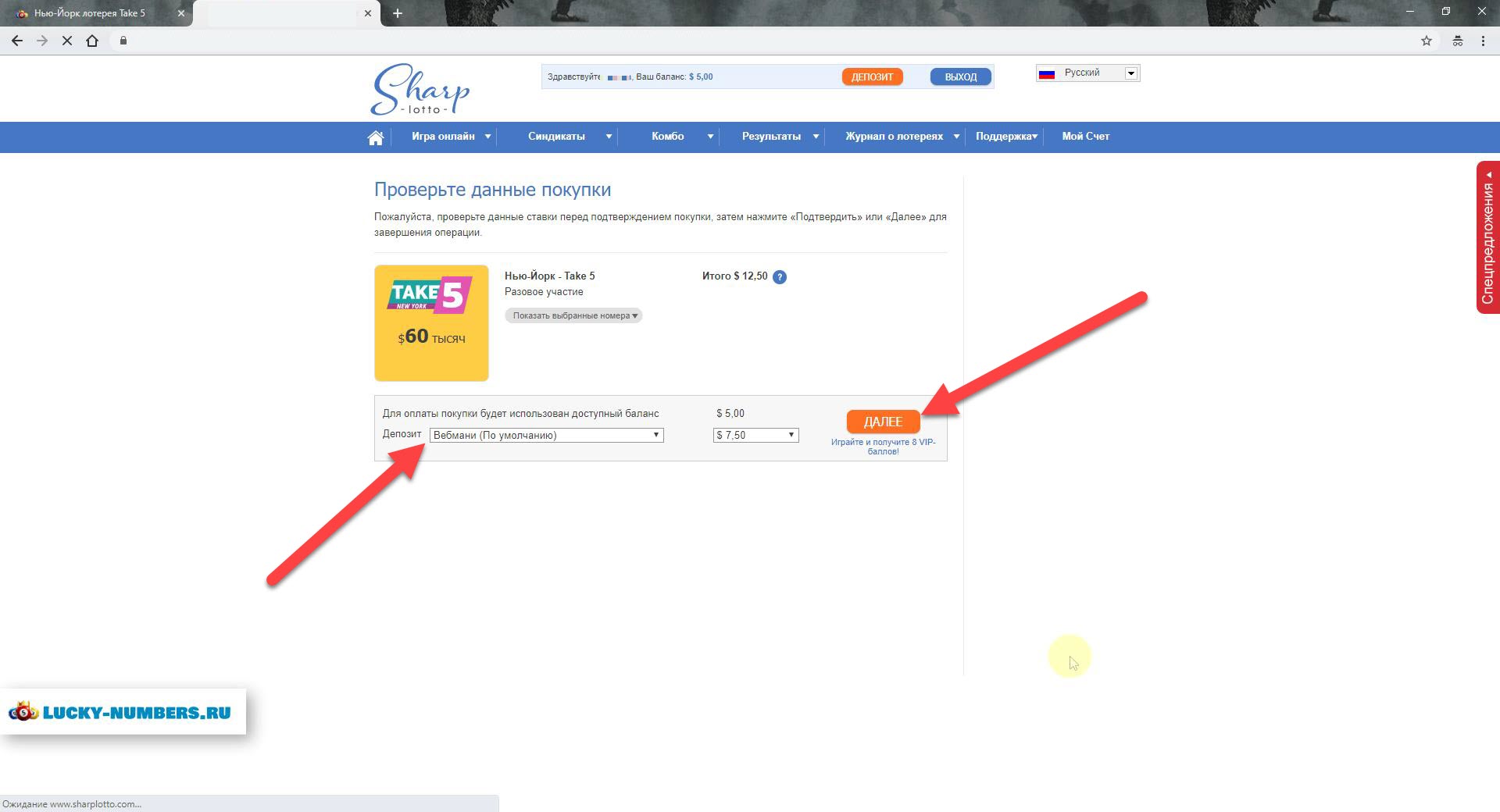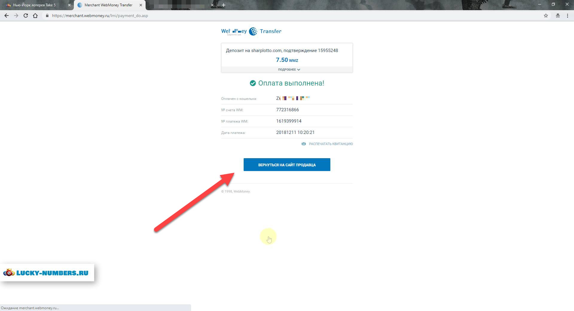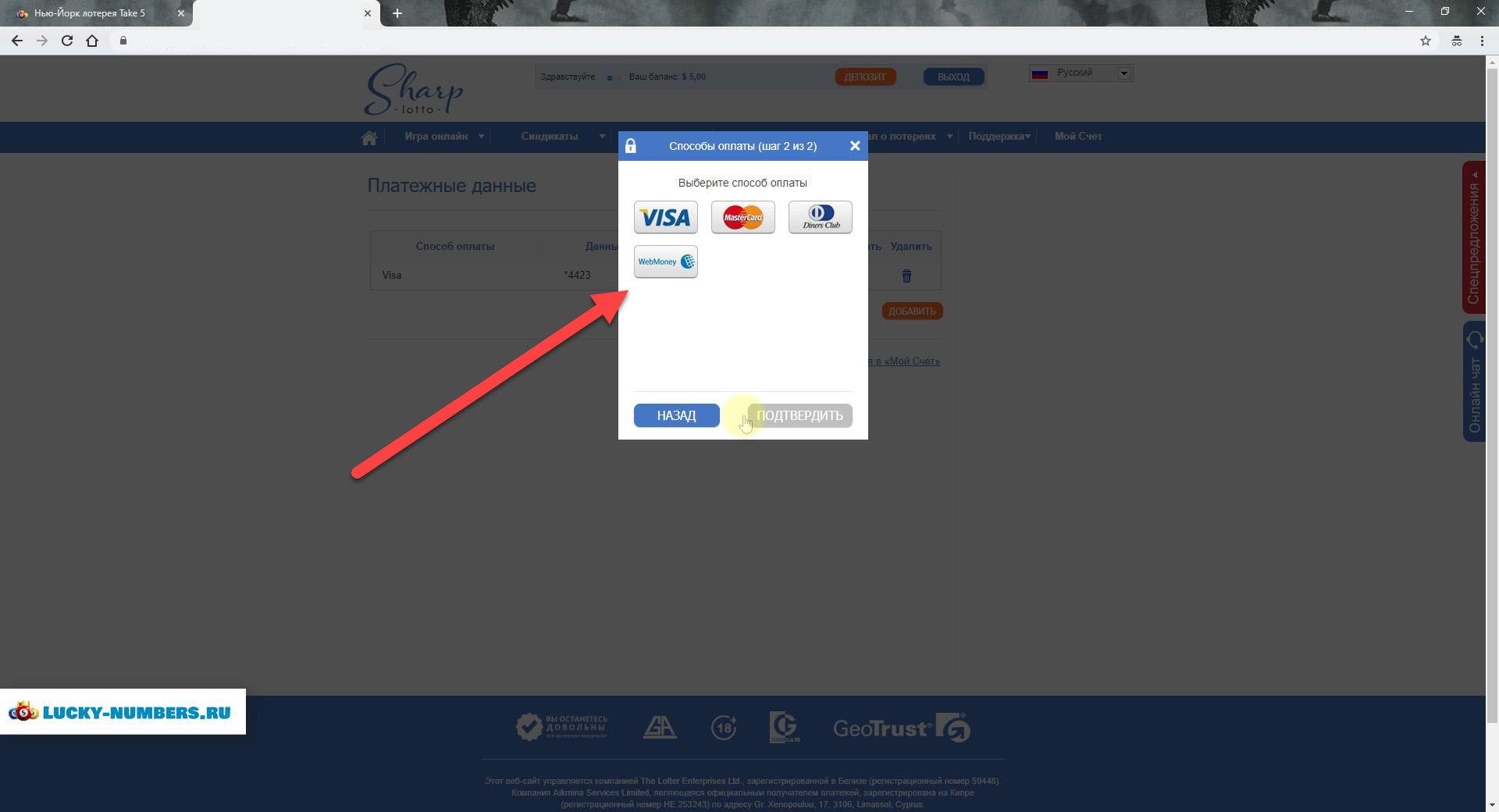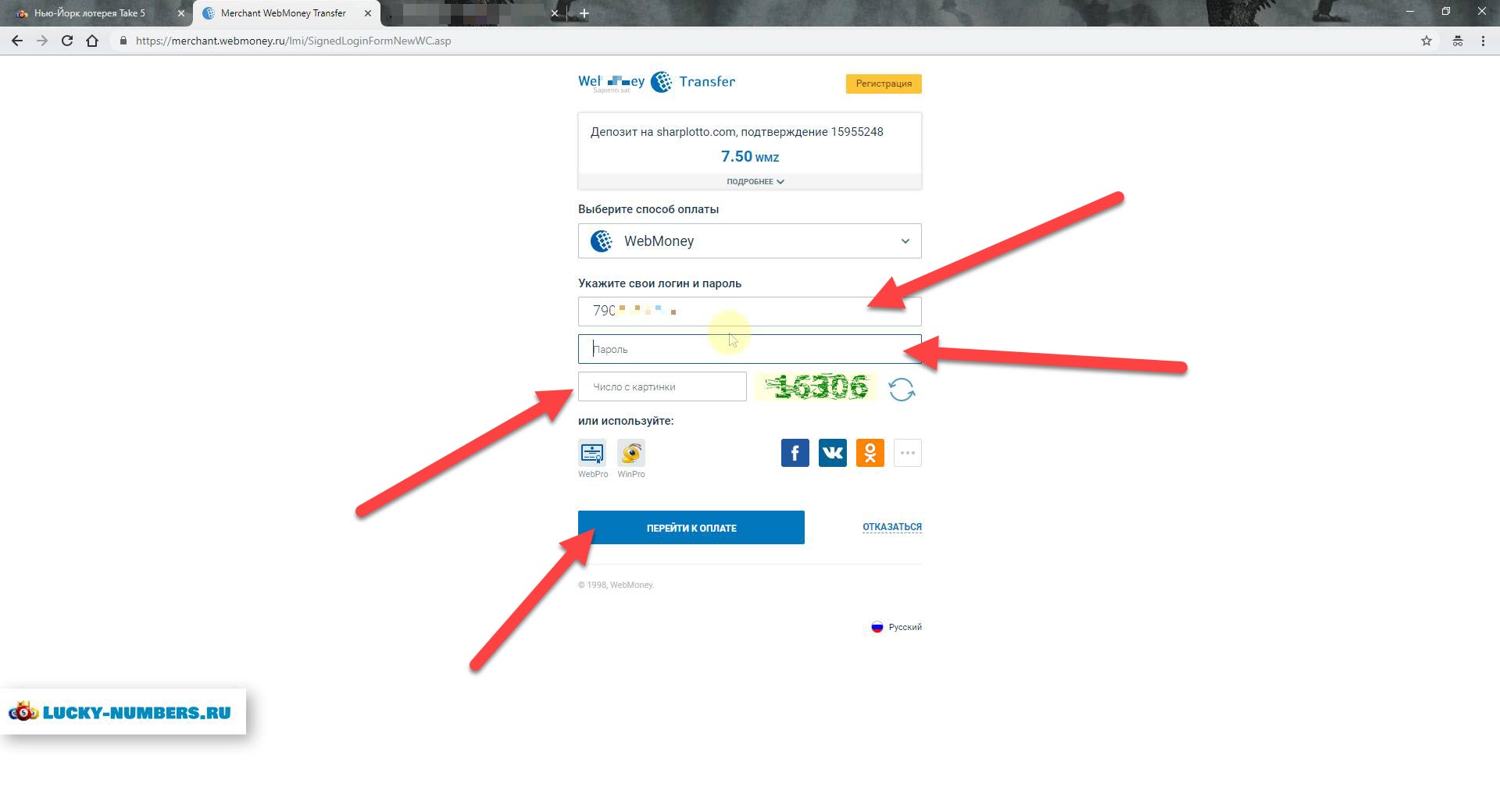 Оплата на Thelotter с помощью Webmoney