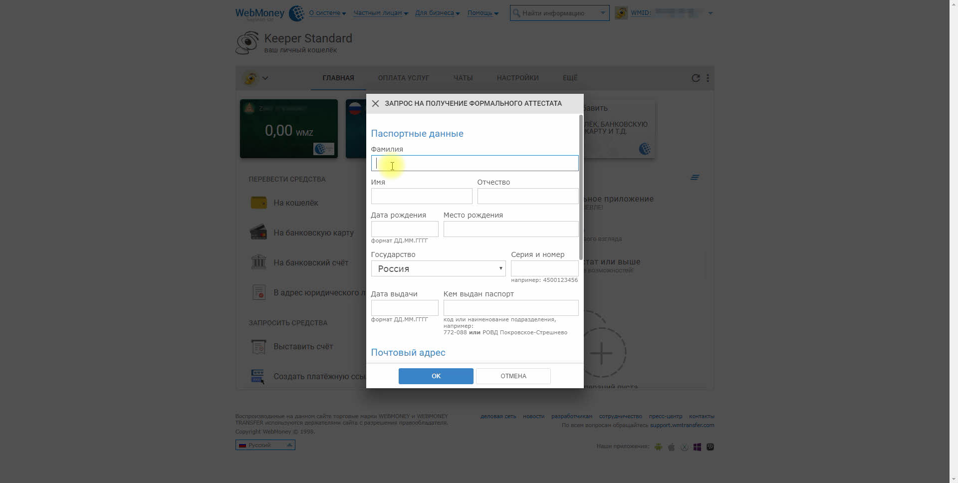 Получение формального аттестата Webmoney