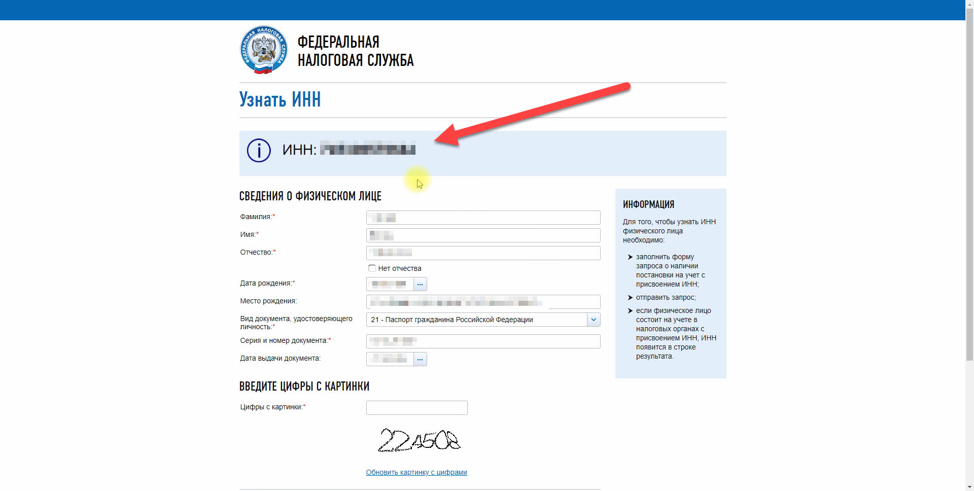 3. Узнать ИНН можно на сайте налоговой - https://service.nalog.ru/inn.do.