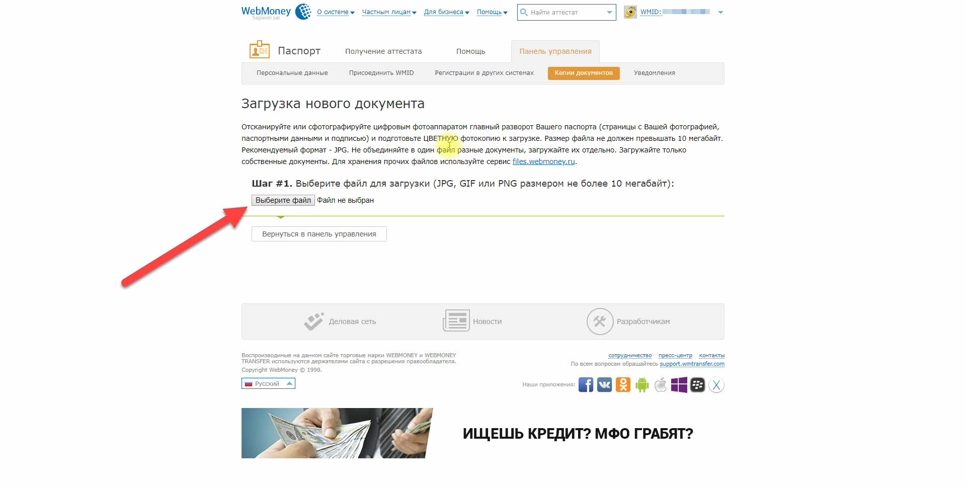 В прошлой статье мы зарегистрировались в webmoney и создали кошелёк. Теперь мы должны получить формальный аттестат, который даст нам право пополнять наш WMZ-кошелёк c банковской карты.